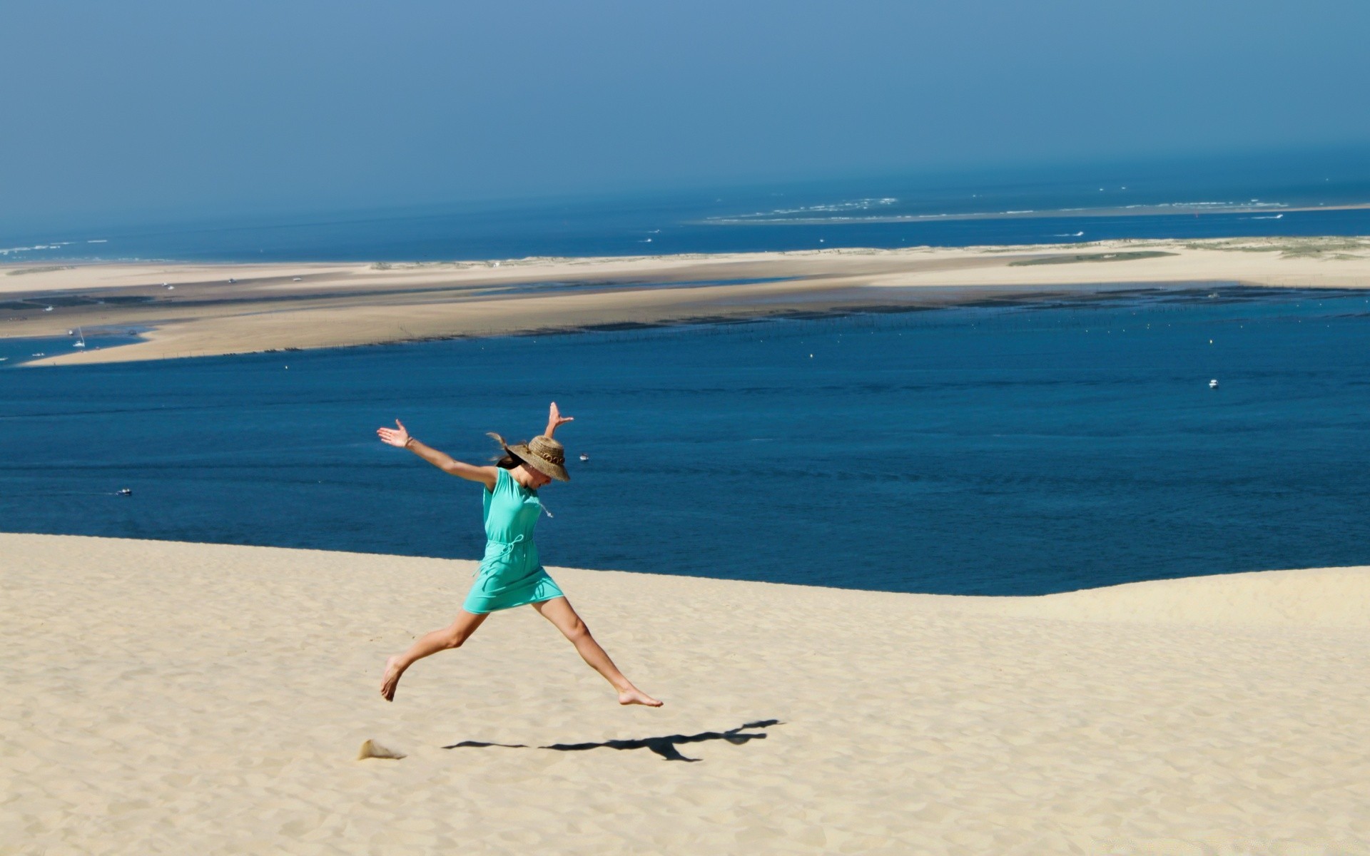 Ein fröhliches Mädchen läuft durch den Sand. Urlaub am Meer