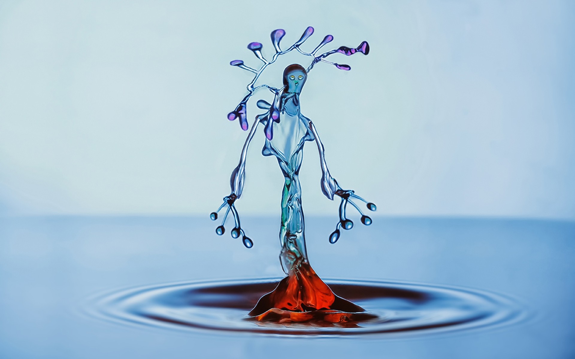 Eine Figur aus dem Wasser, nachdem ein Gegenstand ins Wasser gefallen ist