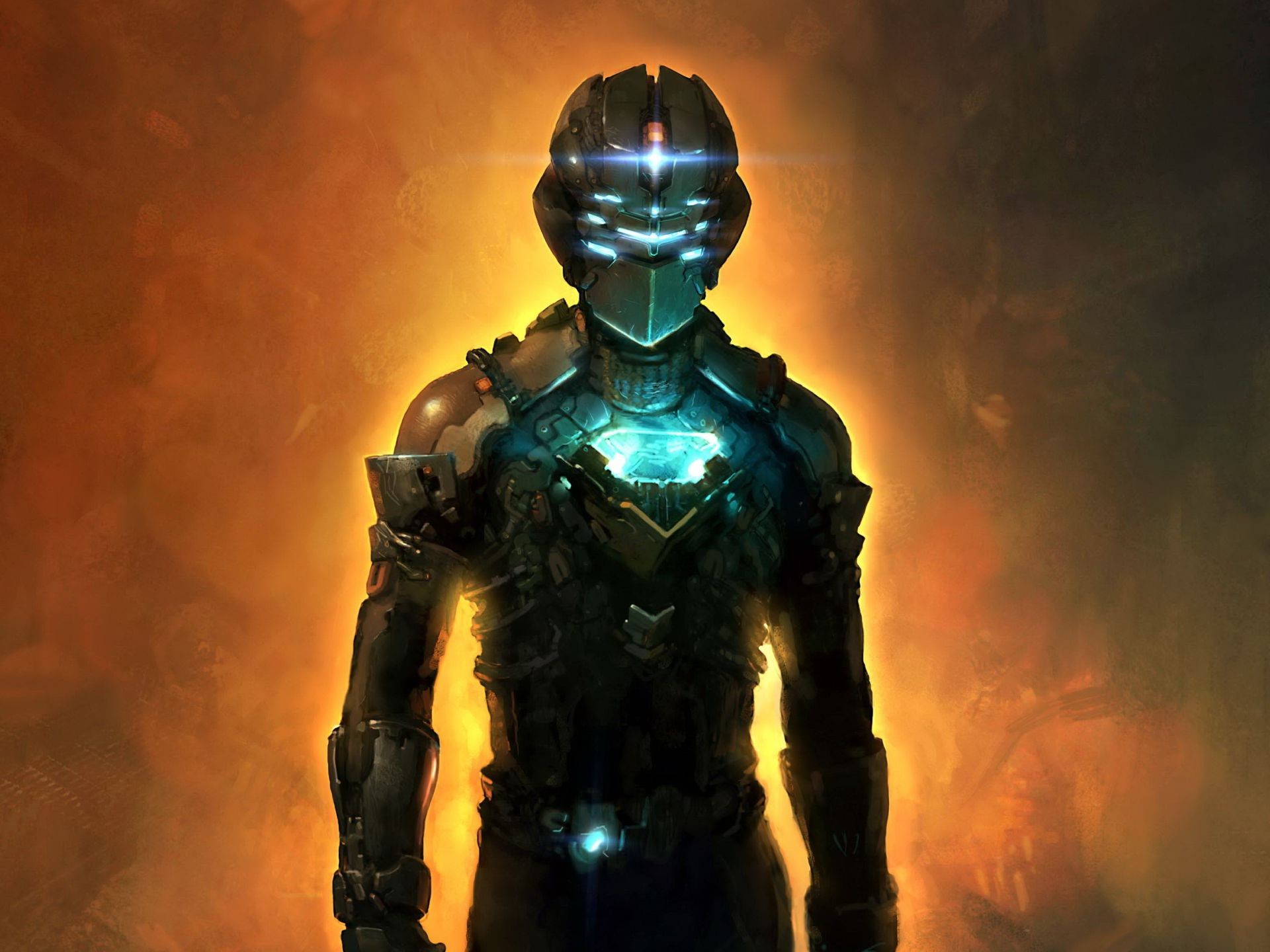 Mann im Anzug aus dem Spiel auf dem Hintergrund des Feuers