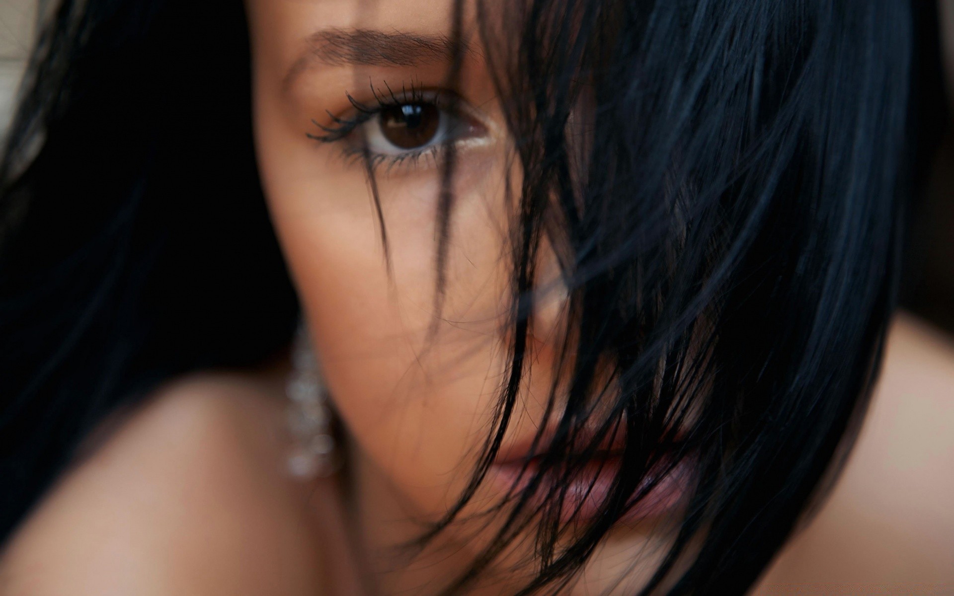 Dunkelhaarige schöne Mädchen in einem Kleid auf einem Stuhl