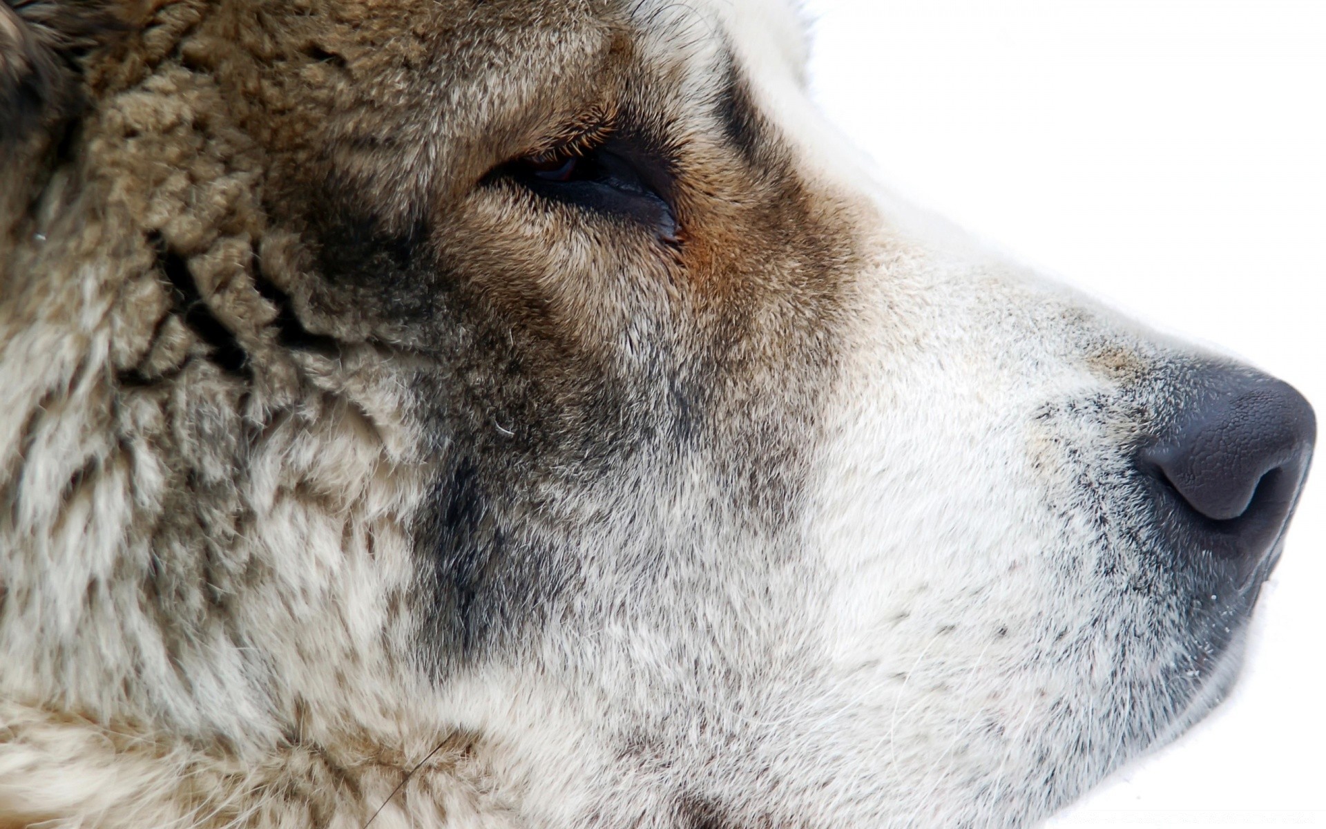 Profil eines großen pelzigen Hundes