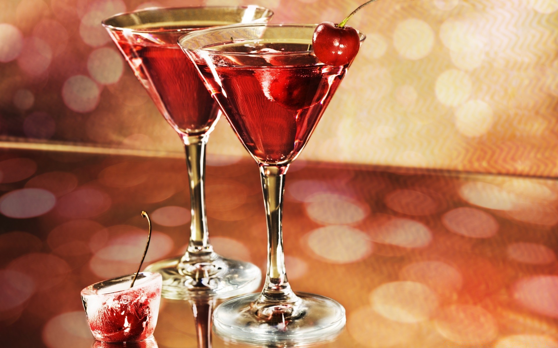 Zwei Cocktails mit Kirschen in Gläsern