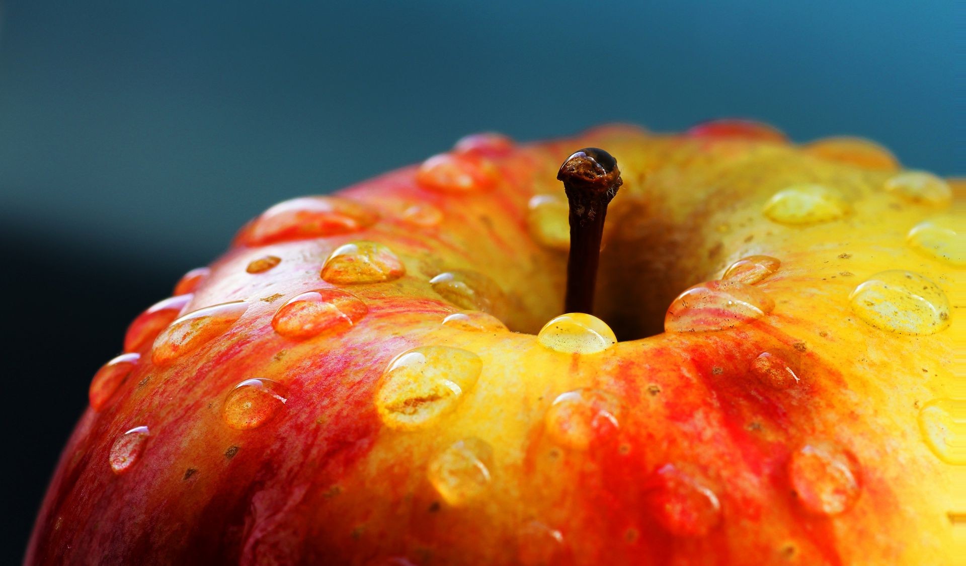 Wassertropfen auf einem Apfel