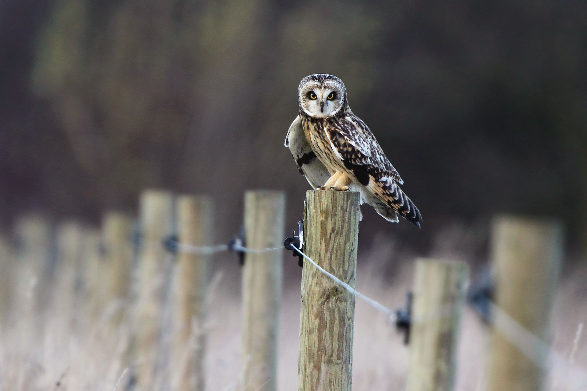 Das Auge einer weißen Eule, die sich hinter dem Grün verbarg