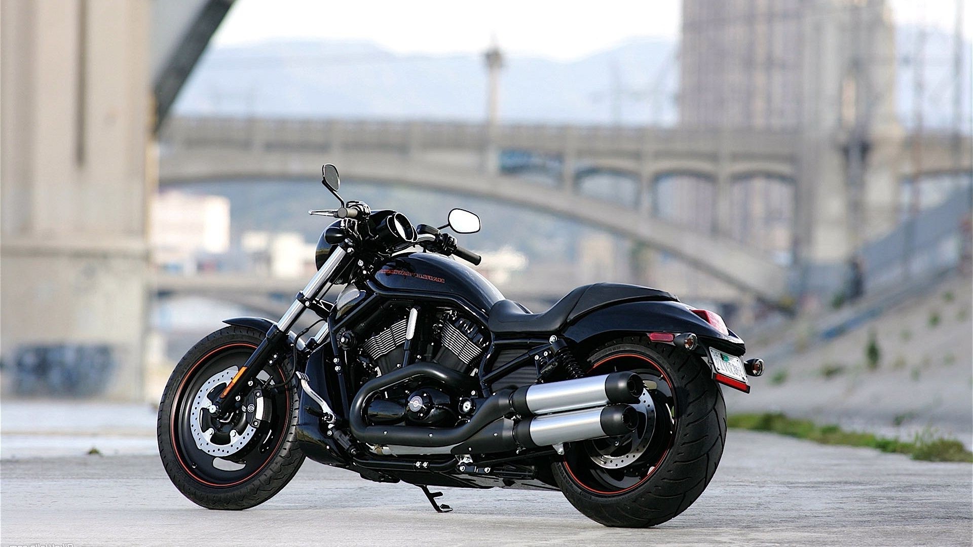 Motorrad auf Hintergrund einer verschwommenen Brücke