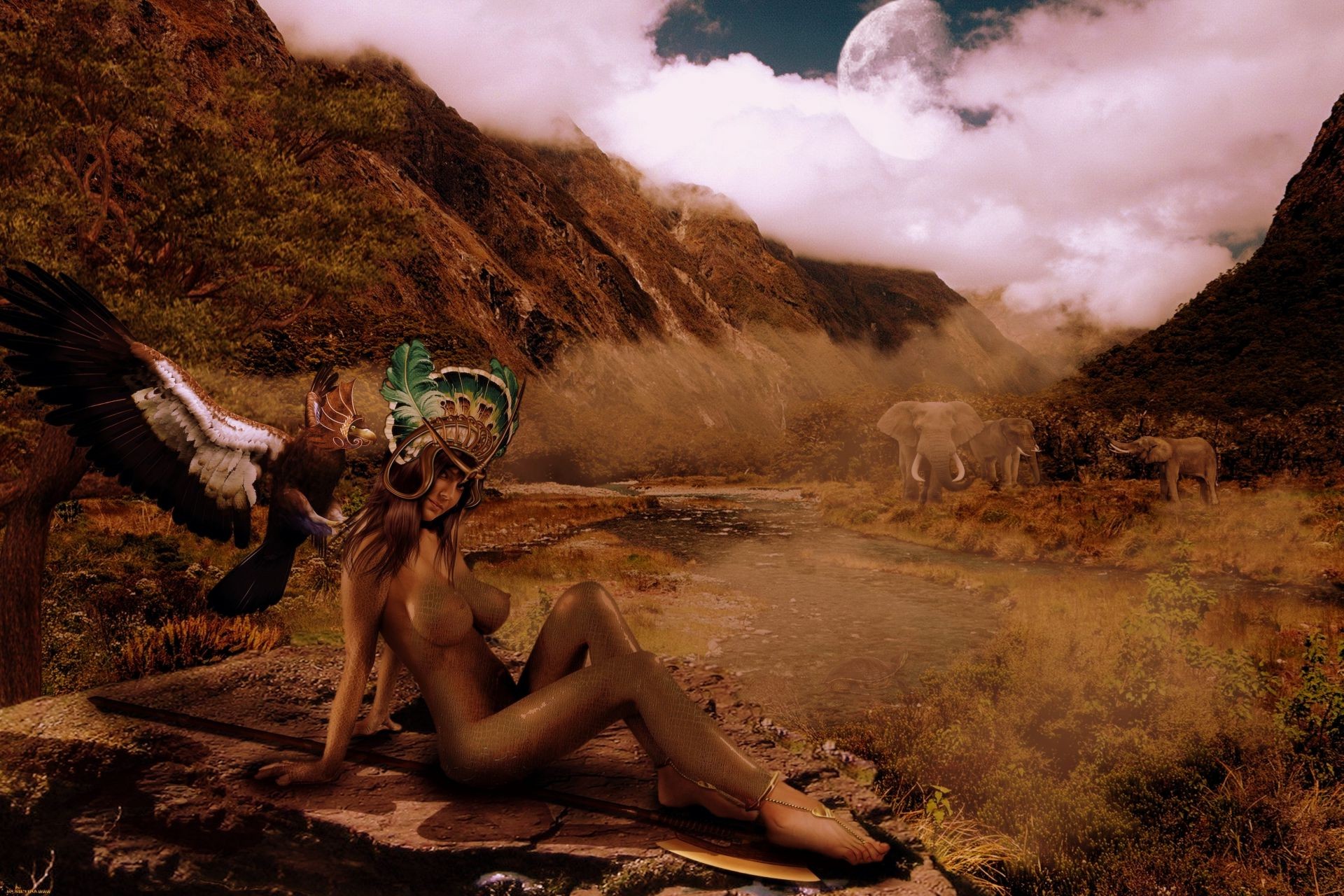 Das Wasser fließt aus der Arbeit in den Teich, die Fantasie