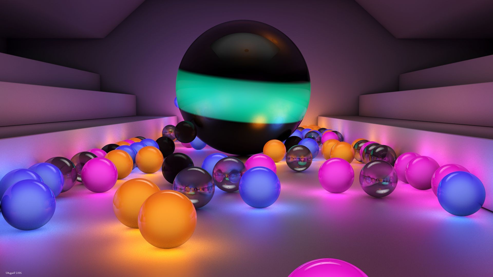 Viele bunte Kugeln im Raum