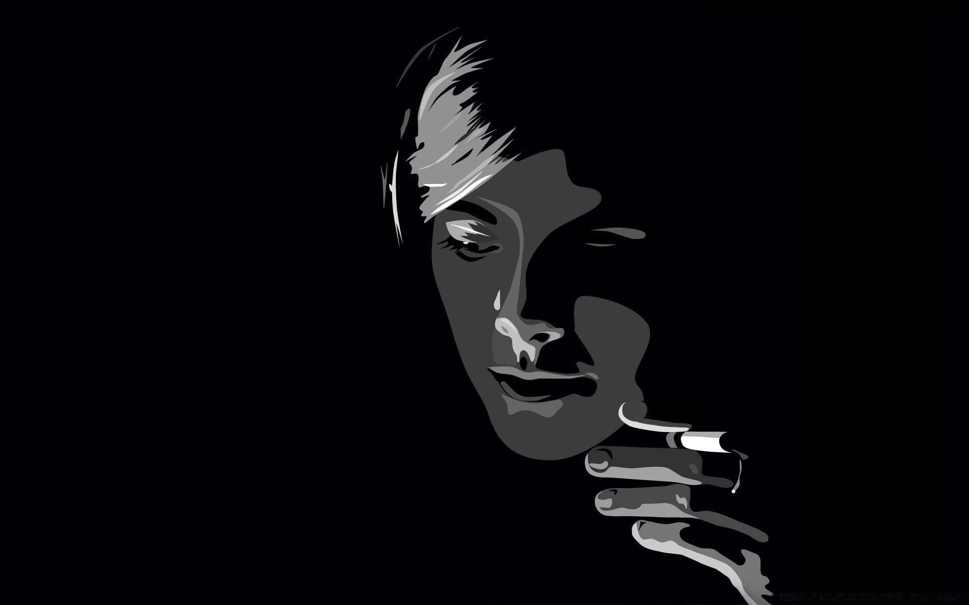 Das Gesicht und die Hand eines Mannes in Schwarz-Weiß-Farben