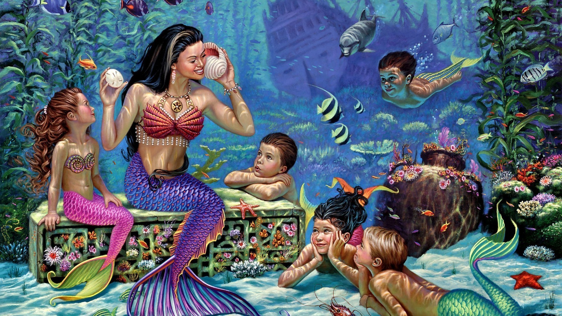 Mysteriöses Bild von Meerjungfrauen unter Wasser