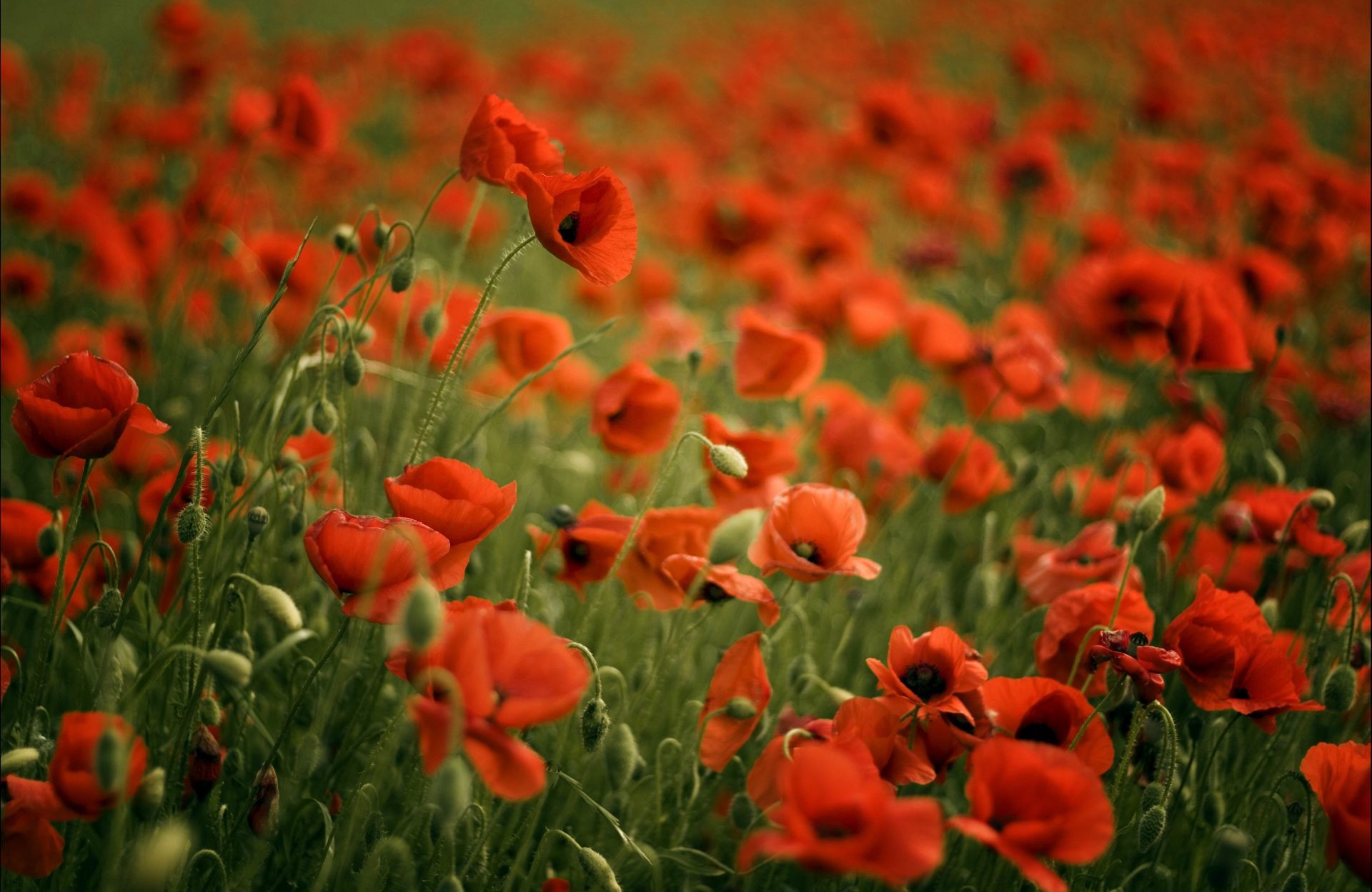 Das Feld. Rote Mohnblumen. Grünes Gras