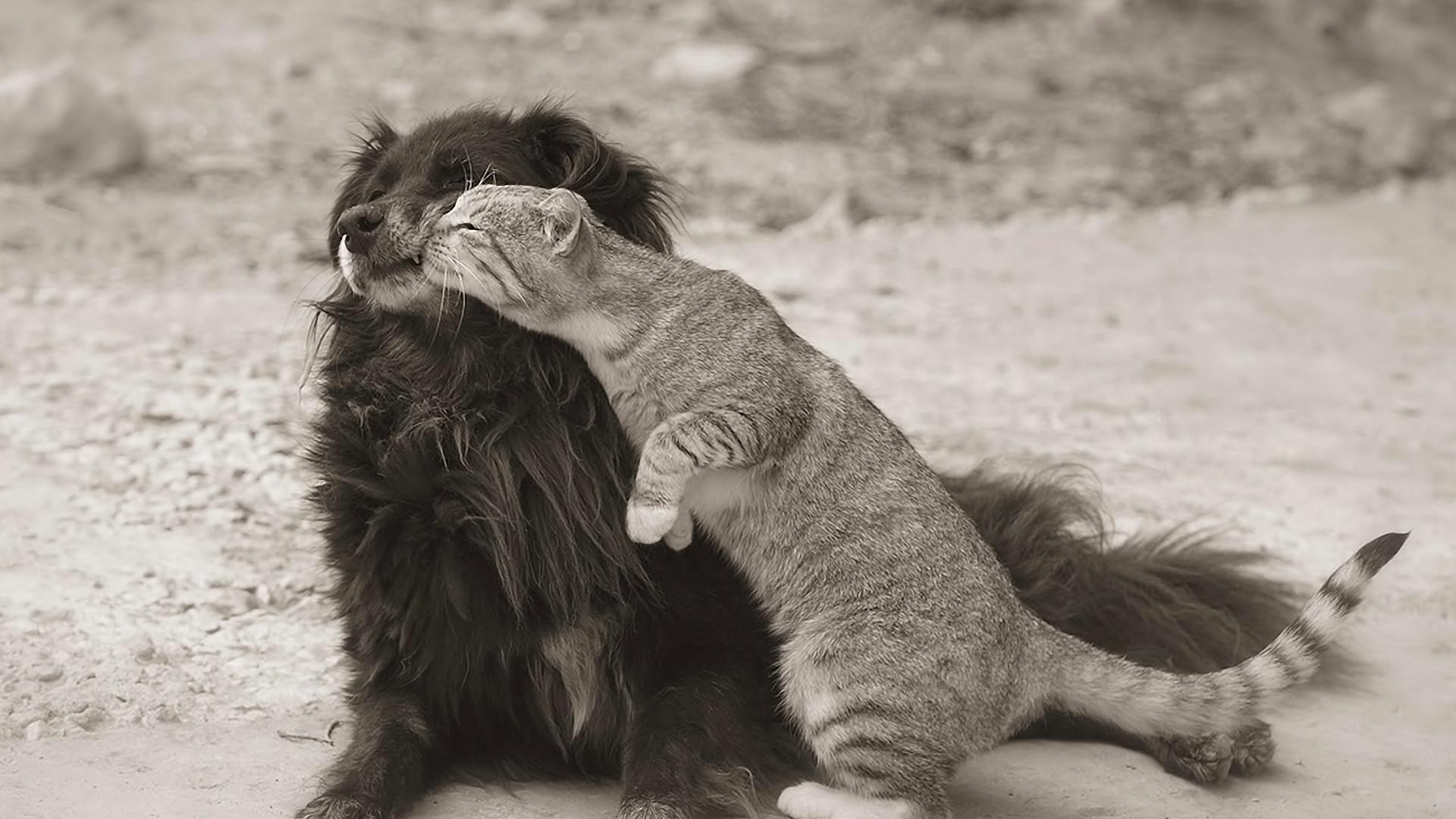 Tierfreundschaft. Die Katze ist ein sanftes Wesen