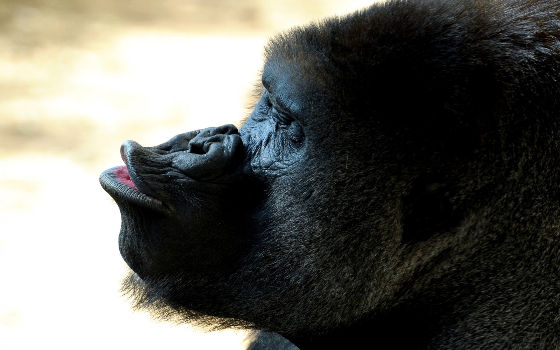 Die Schnauze eines Gorillas. Tier. Ein Affe