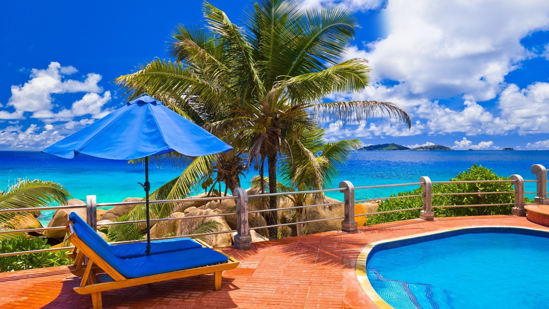 Schicke Terrasse mit Pool und Meerblick