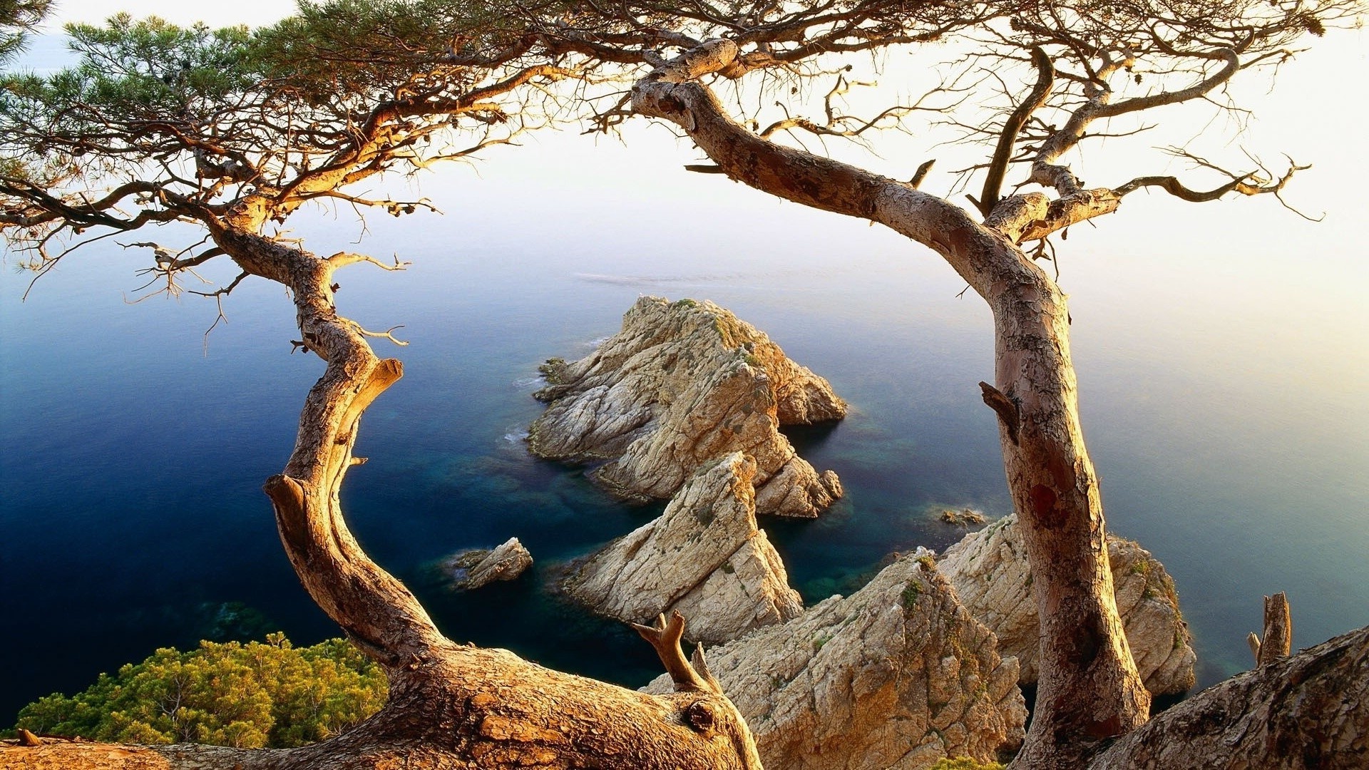 Riesige Felsbrocken am Boden eines flachen Flusses