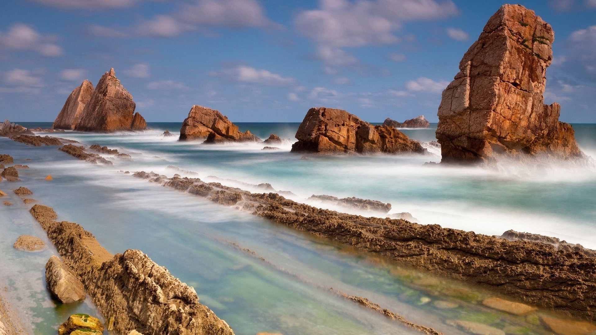 Vier felsen, die aus der meeresoberfläche herausragenVier Felsen, die aus der Meeresoberfläche herausragen