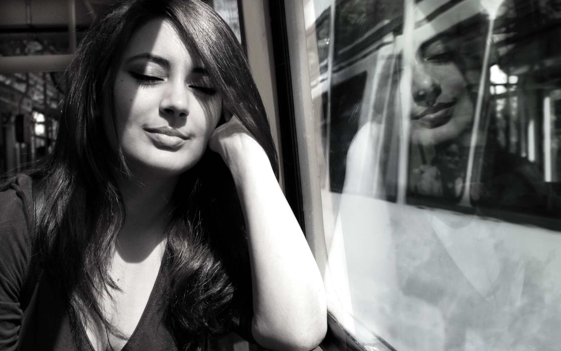 Grüner Baum im Fenster hinter einer Ziegelmauer