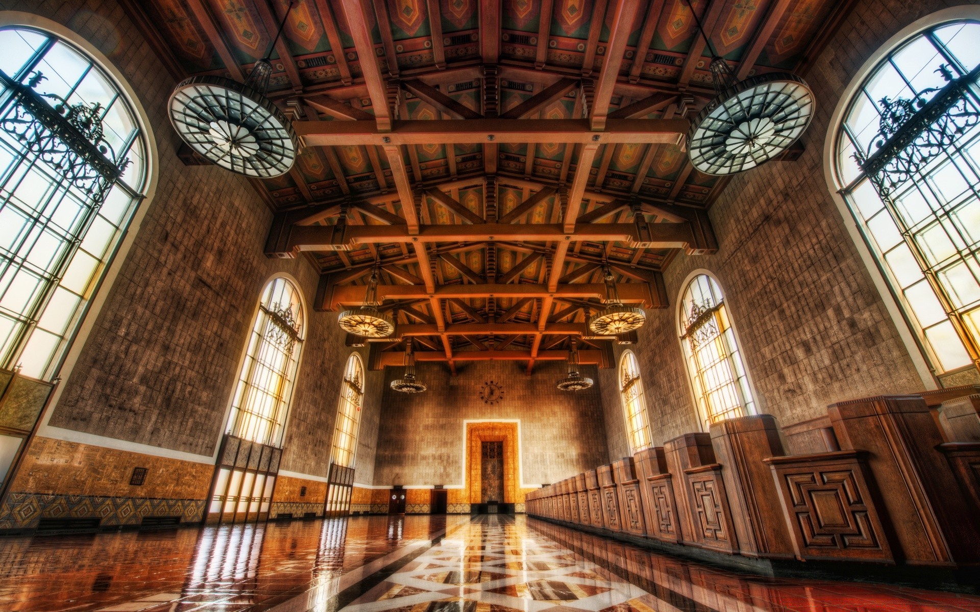 Eine Brücke mit einem fahrenden Zug in einer Stadtlandschaft