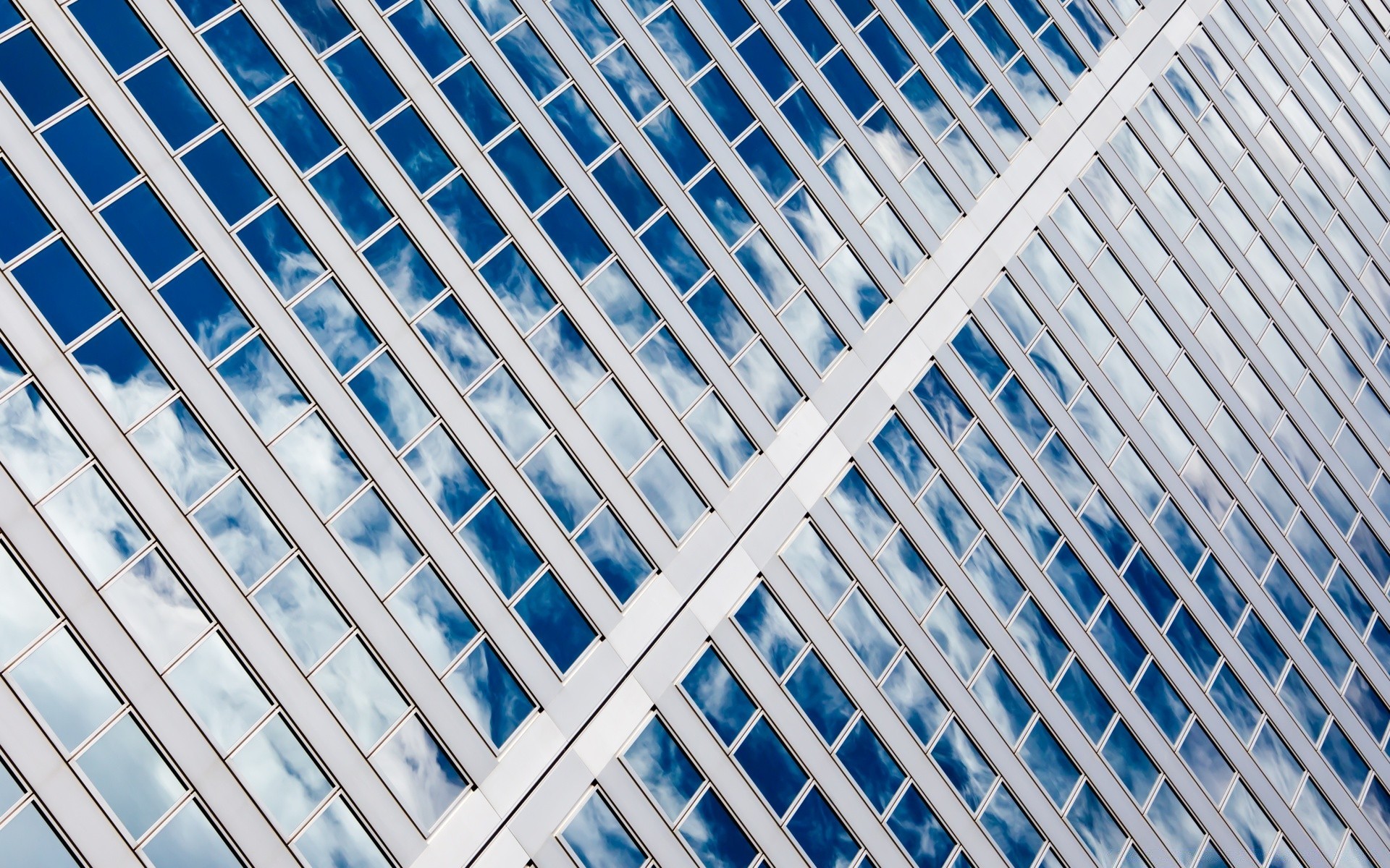 Malerische reflexion des himmels in den fenstern eines mehrstöckigen gebäudes