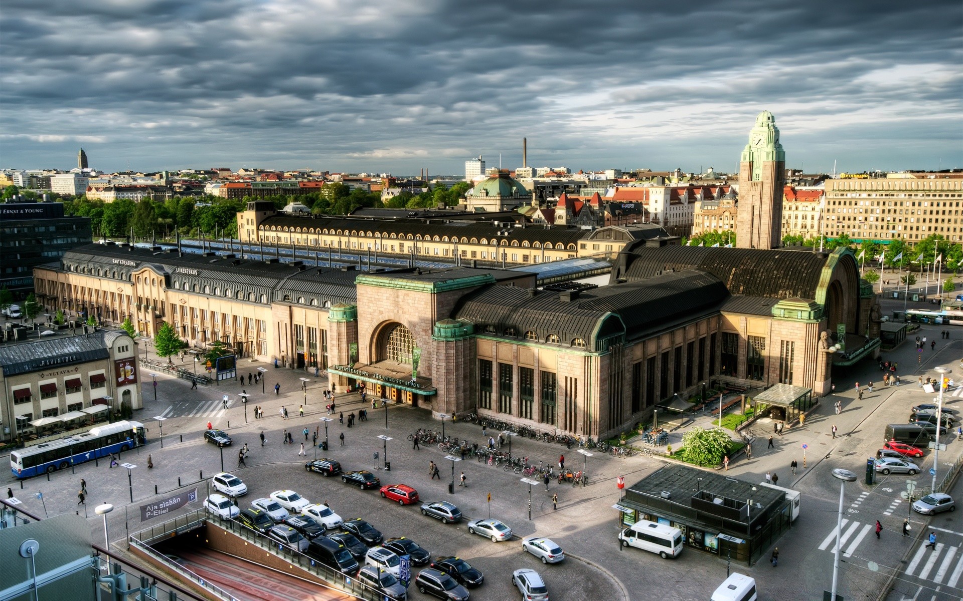 Der Turm mit den Häusern am Teich und dem Grün rundherum