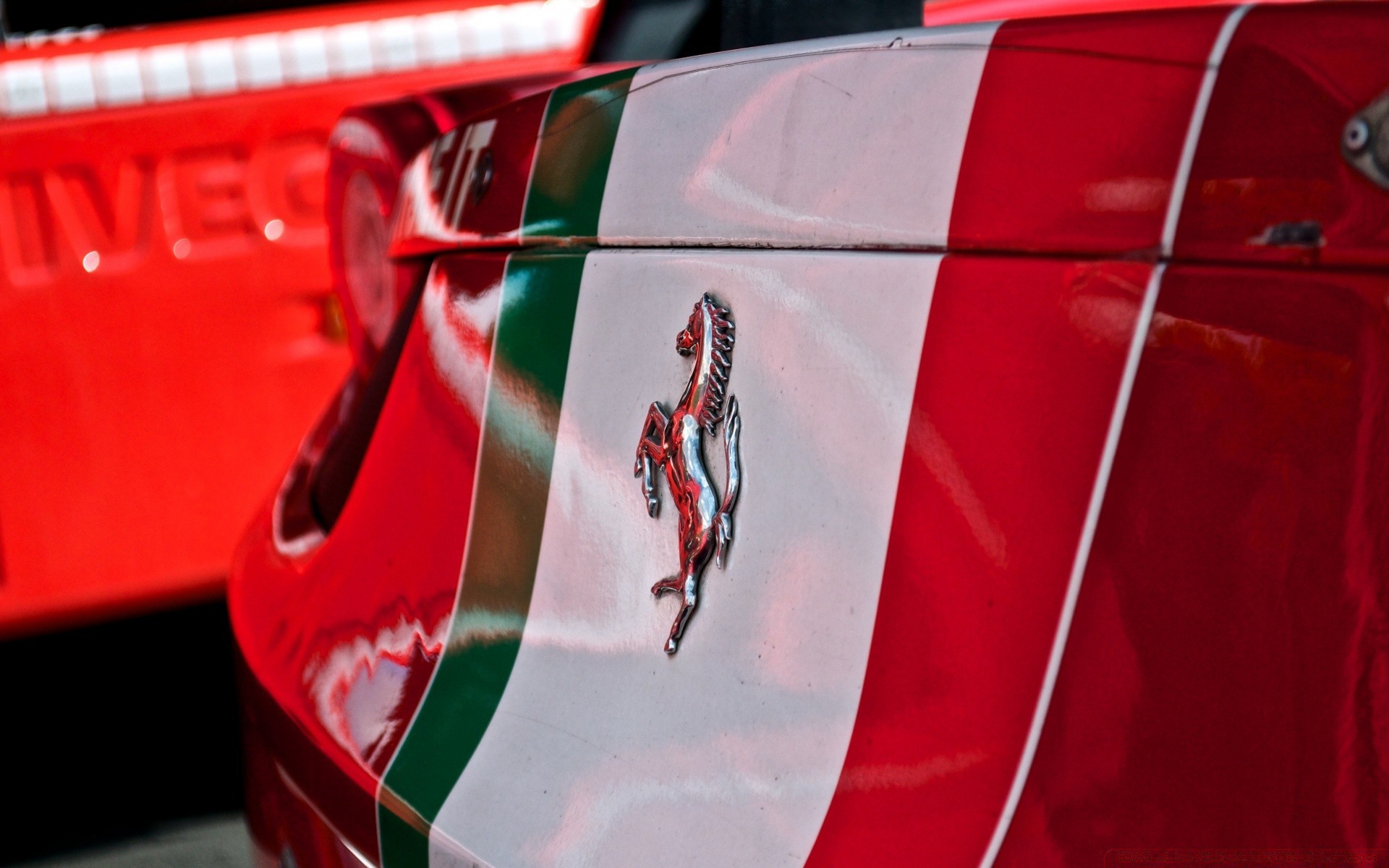 Roter Doppel-Ferrari Spider vor dem Hotel