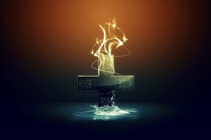 Konfrontation zwischen feuer und wasser auf schwarzem hintergrundKonfrontation zwischen Feuer und Wasser auf schwarzem Hintergrund