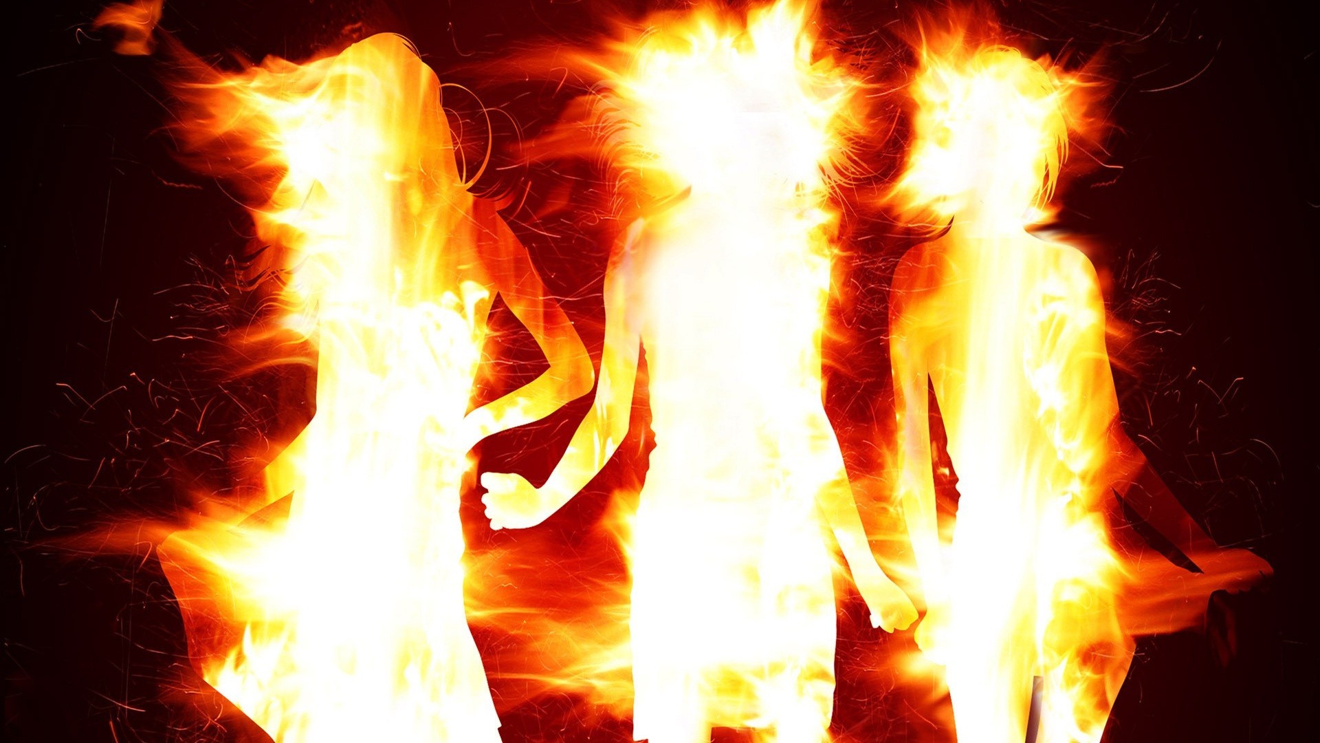 Feurige Silhouetten von Mädchen. Mädchen in Flammen