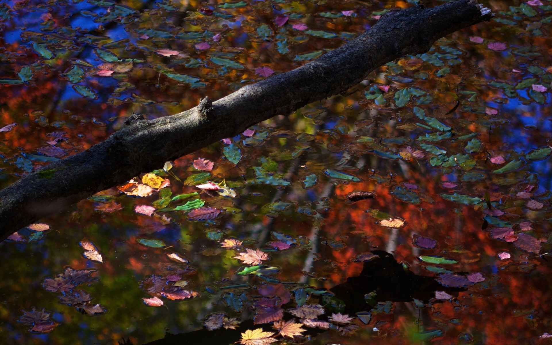 Holz im Herbst mit Blättern