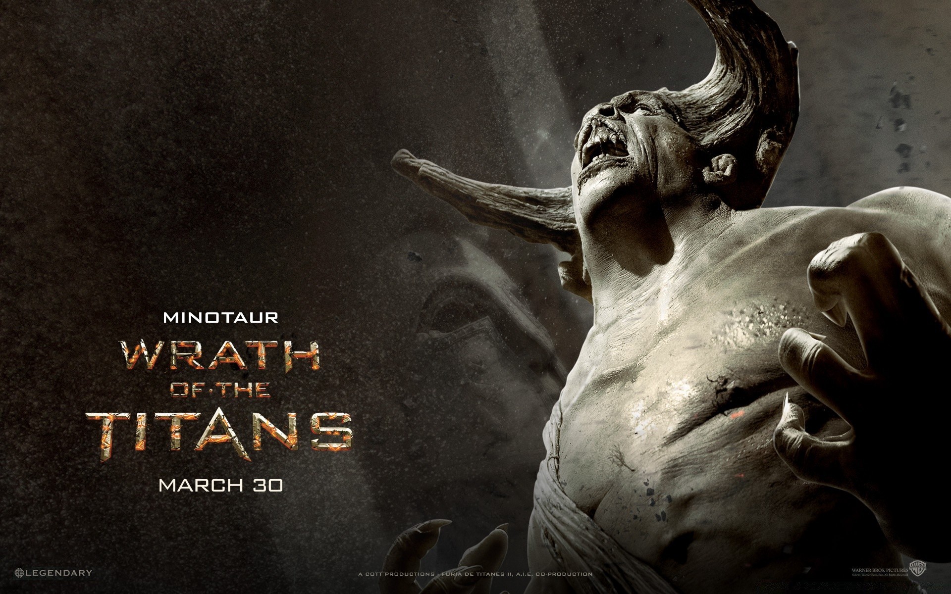 Eine Statue eines mythischen Charakters mit Hörnern, der seinen Kopf in den Himmel gehoben hat und erschöpft schreit