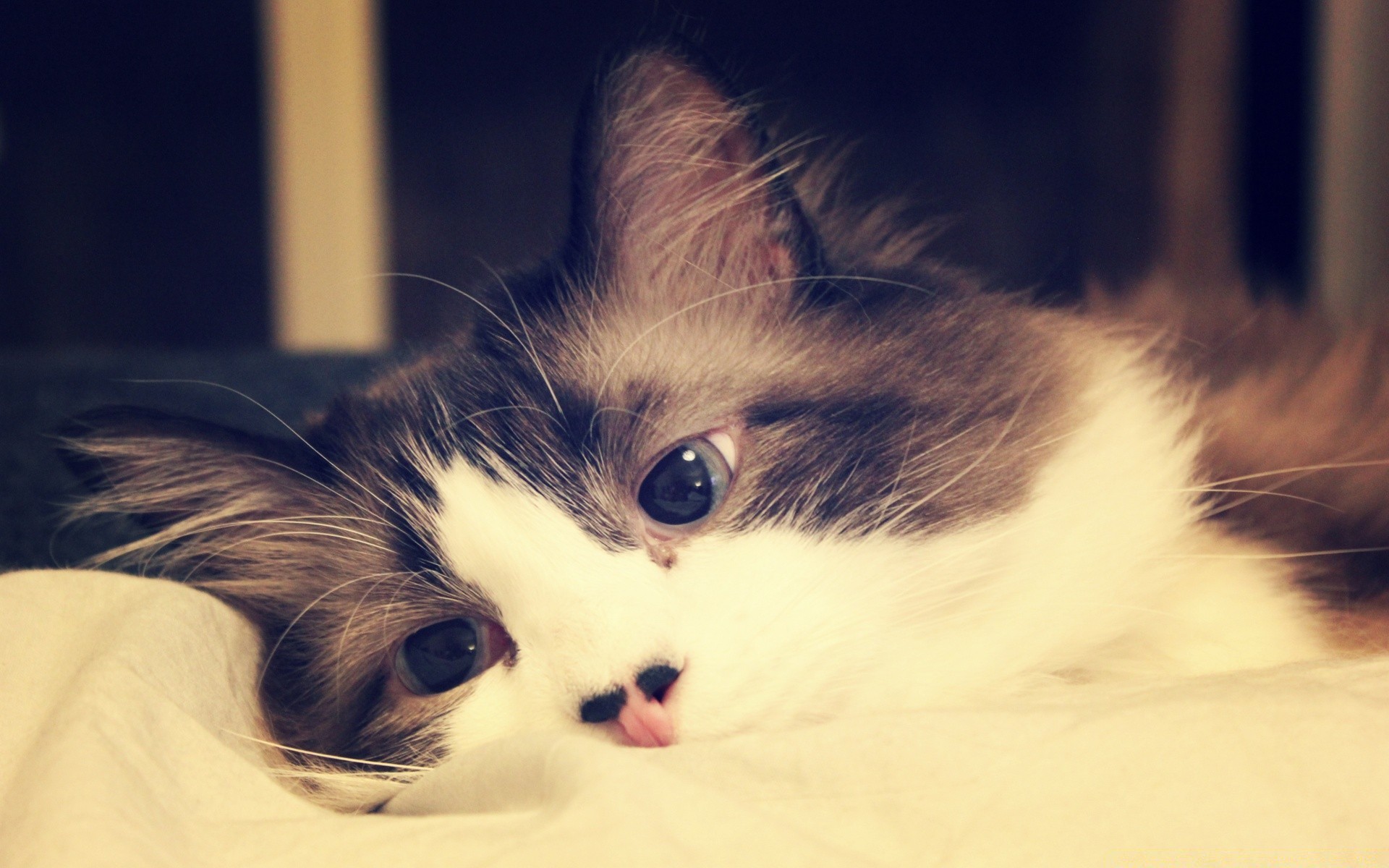 Kätzchen, das auf einer roten Decke liegt