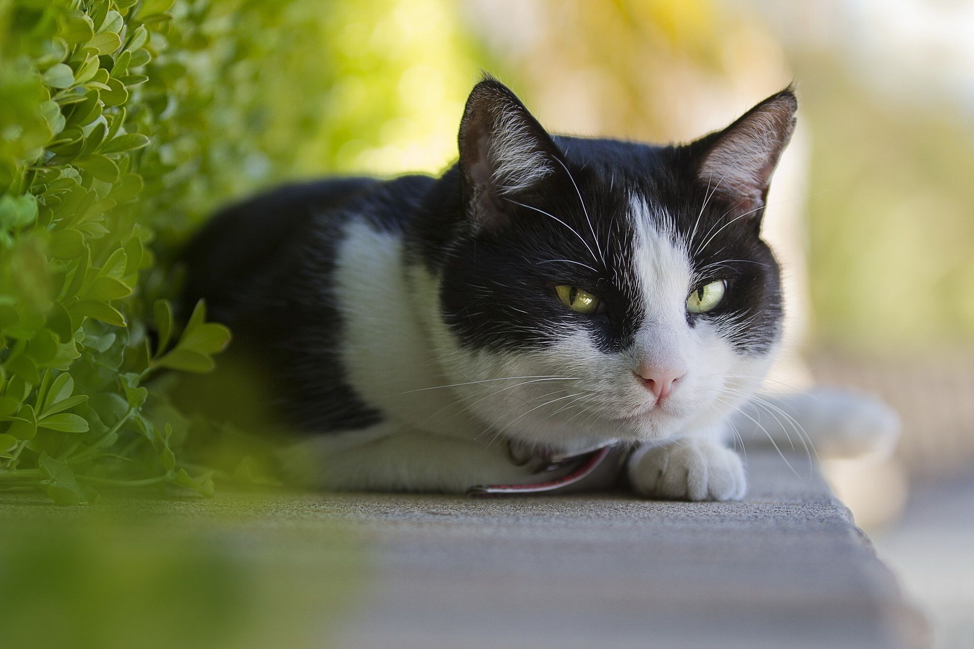 Gestreifte Katze schaut in die Sonne