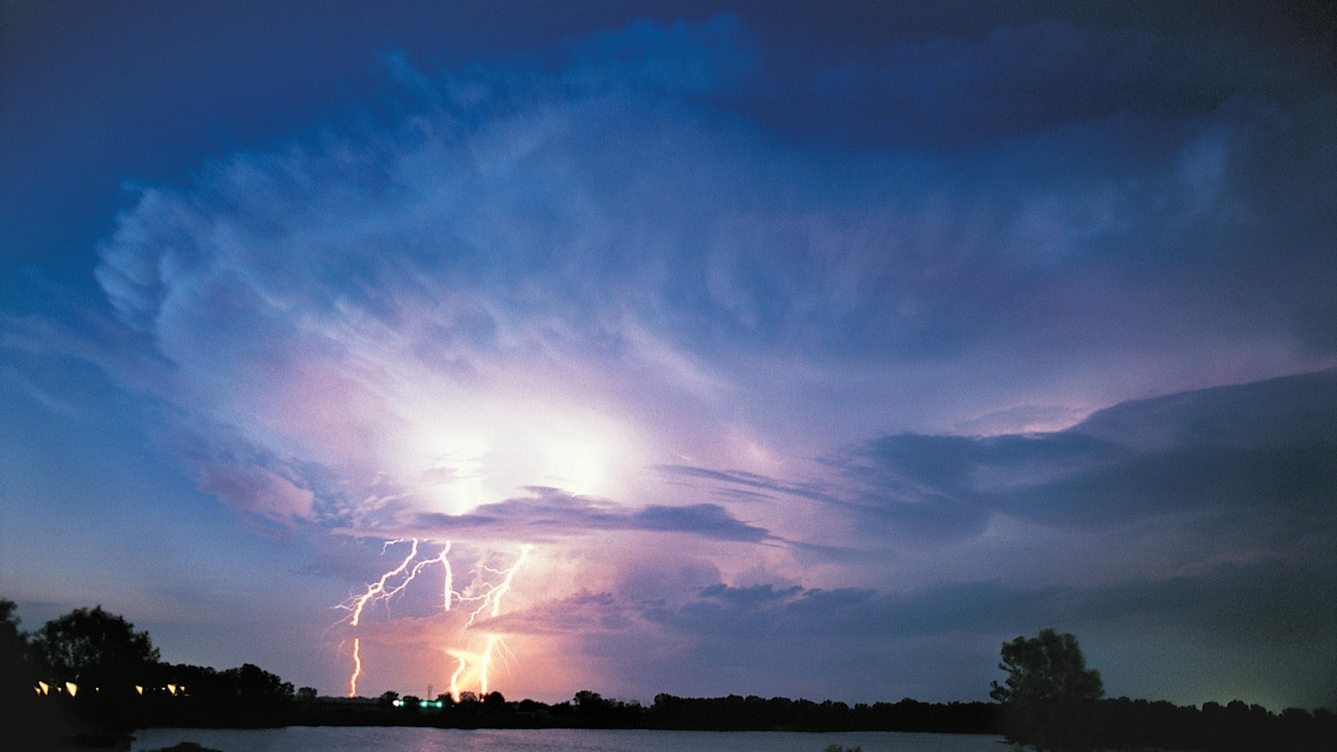Sonnenuntergang Landschaft mit Gewitterblitzen
