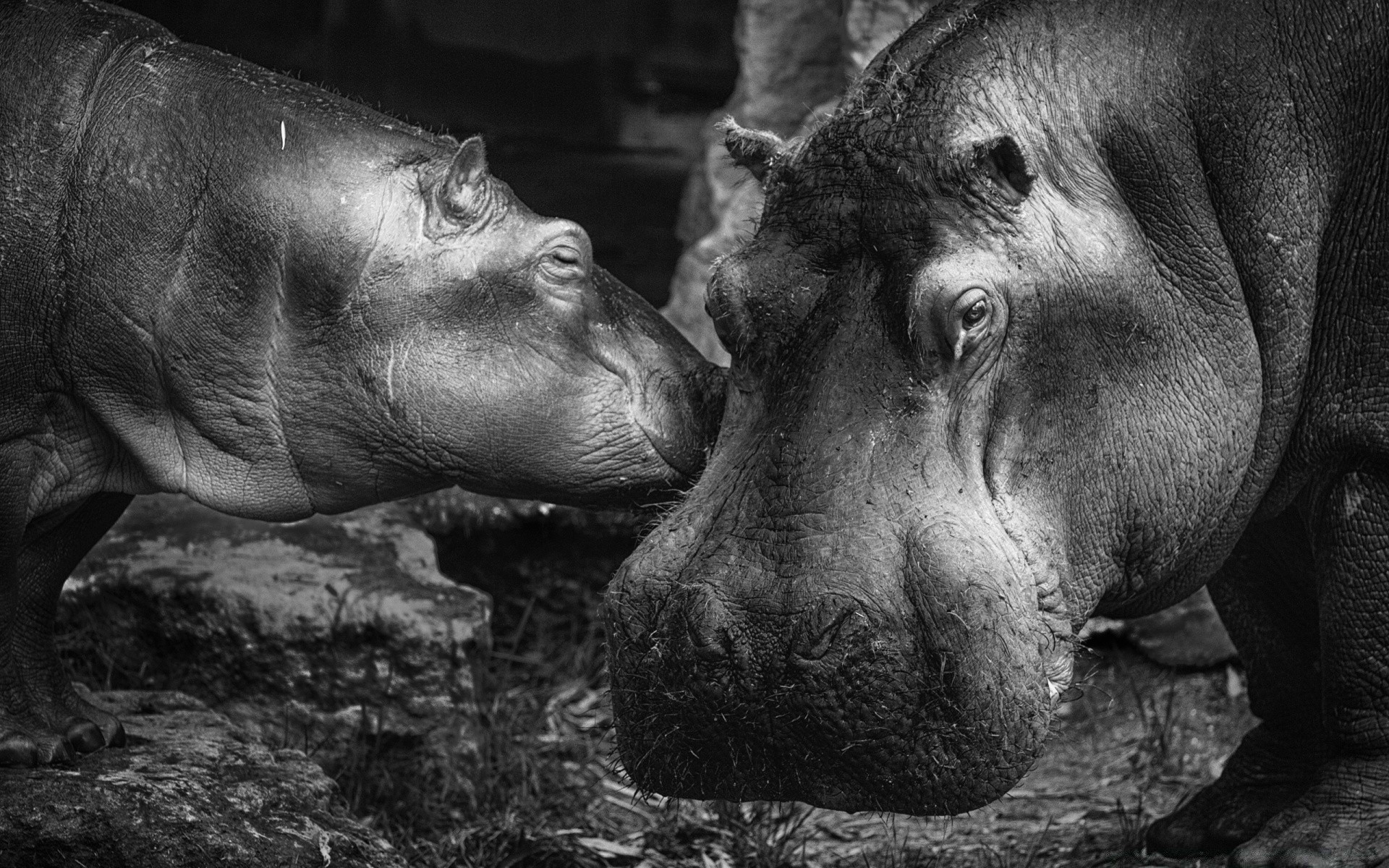 Porträt von zwei Säugetieren in Schwarz-Weiß