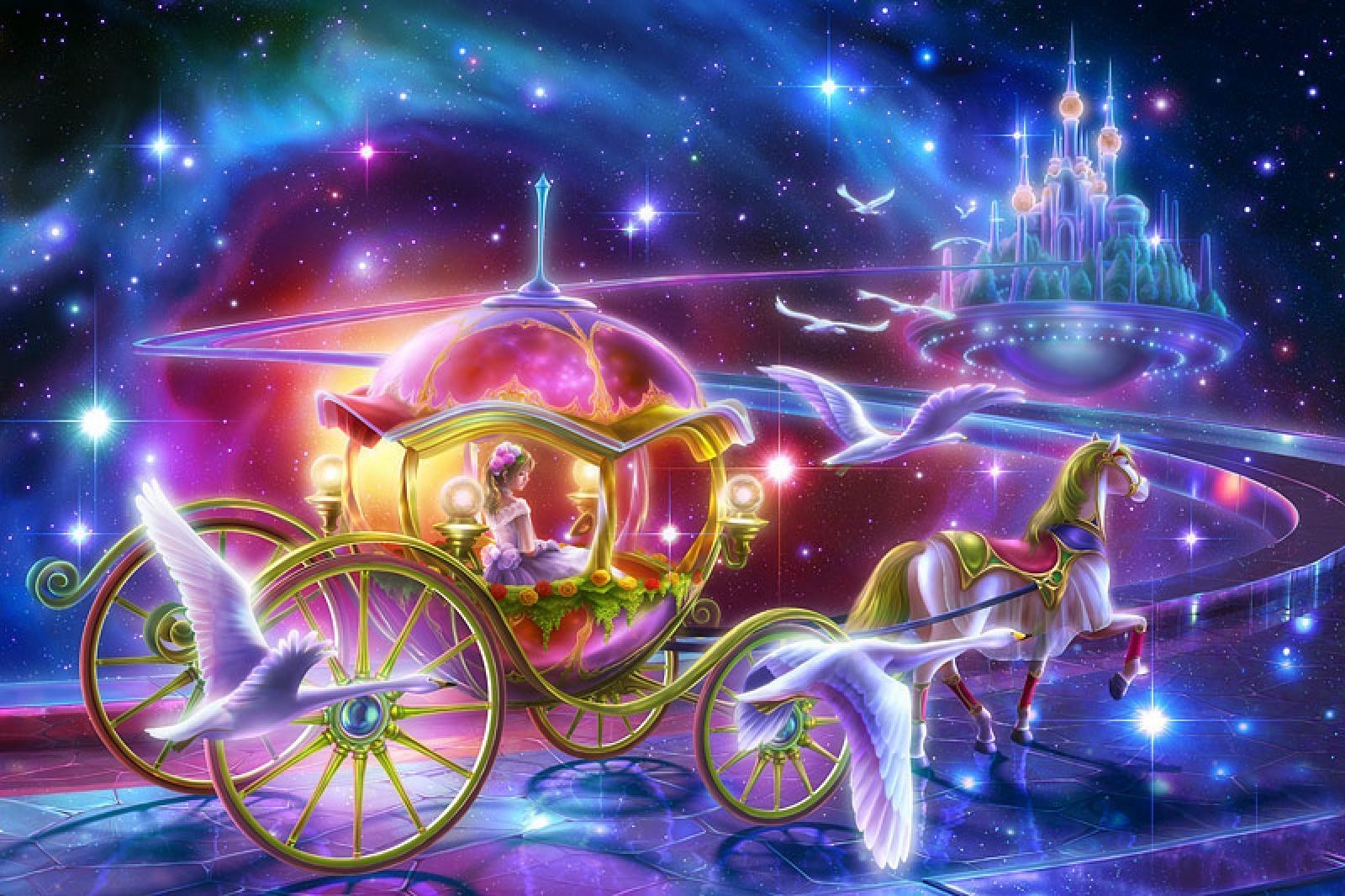 Eine magische Kutsche. Aschenputtel eilt zum Ball