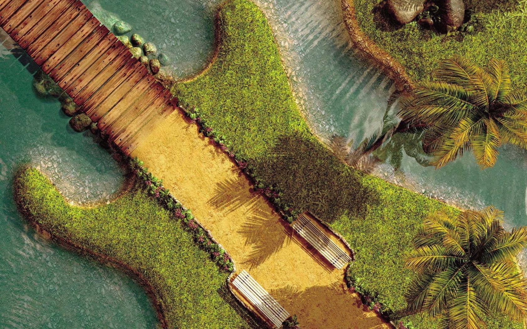 Tropische insel in form einer gitarre in der naturTropische Insel in Form einer Gitarre in der Natur