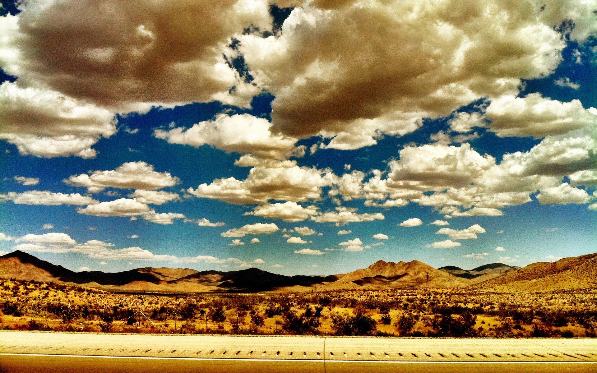 Vintage Foto von bewölktem Himmel über der Wüste
