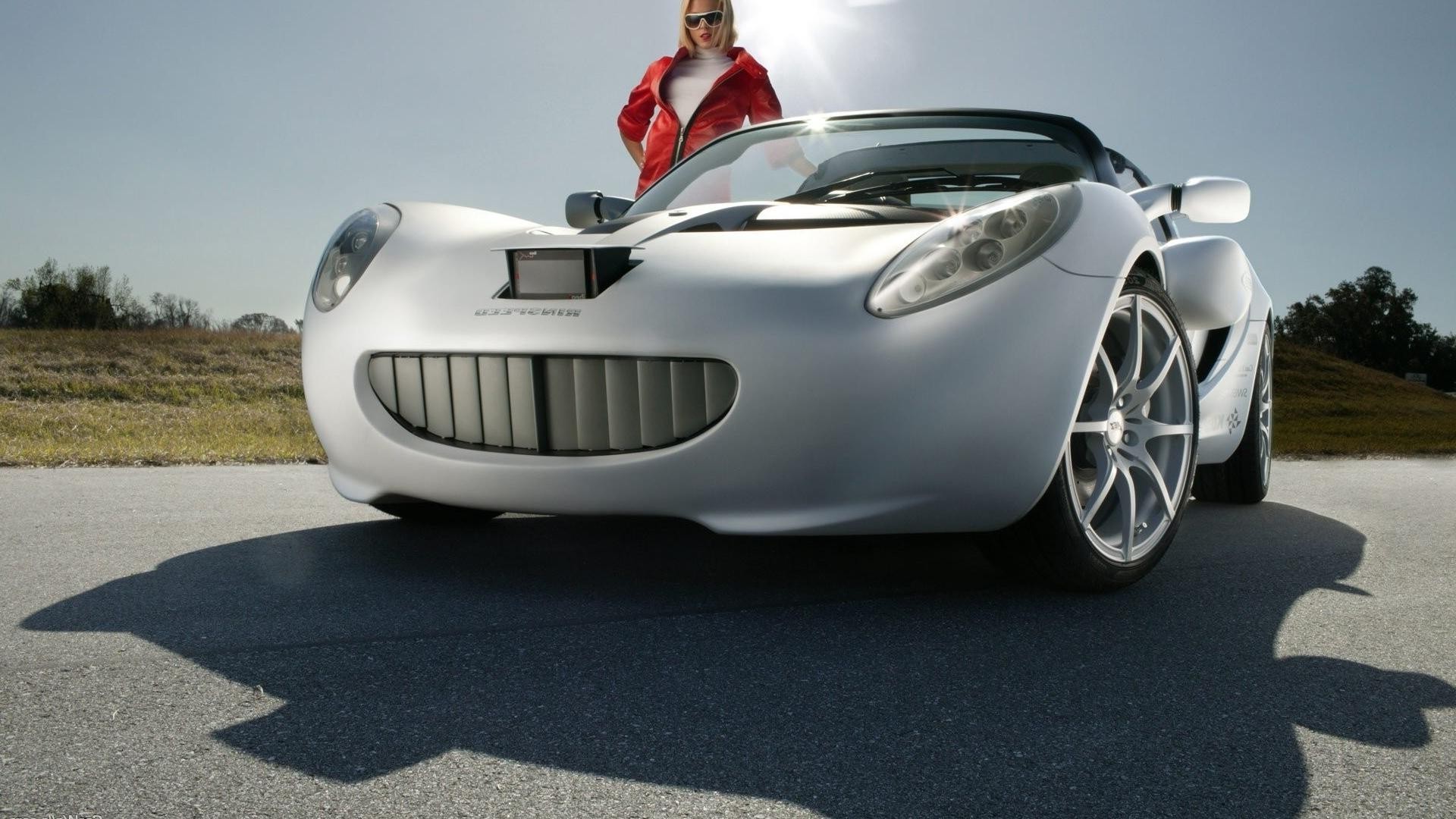 Foto einer Frau auf dem Hintergrund eines stilvollen Sportwagens