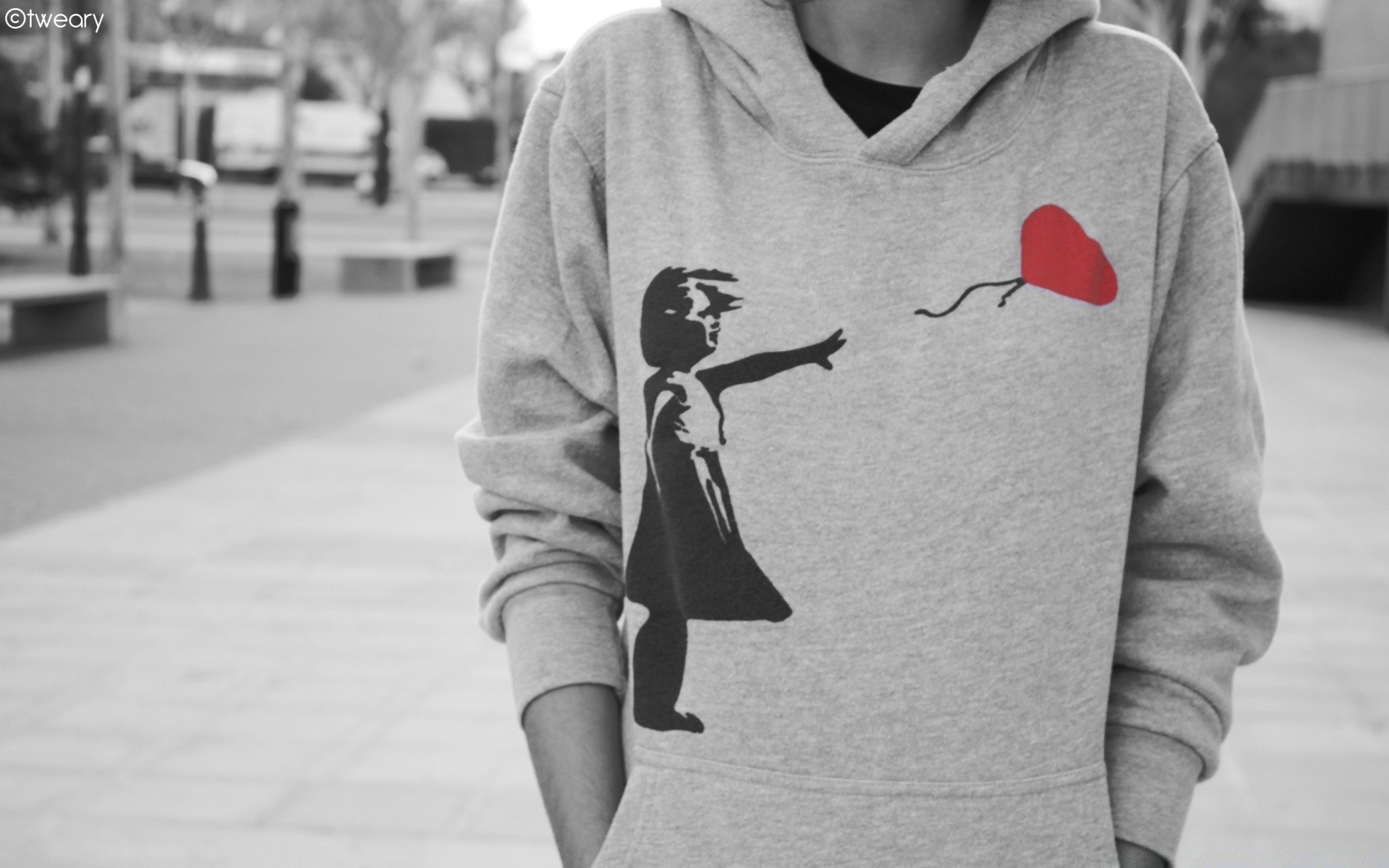 Foto eines Mannes in einem Sweatshirt mit hellem Herzen