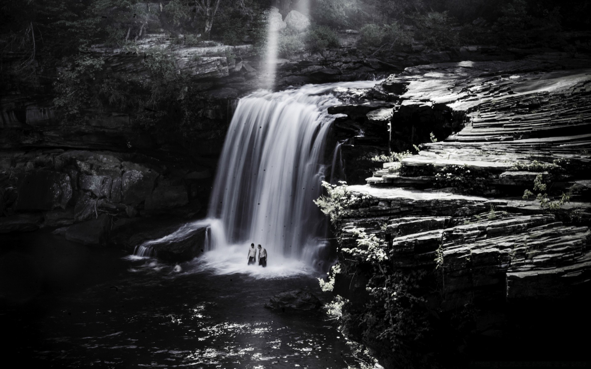 Und der Schwarz-Weiß-Wasserfall und die Menschen
