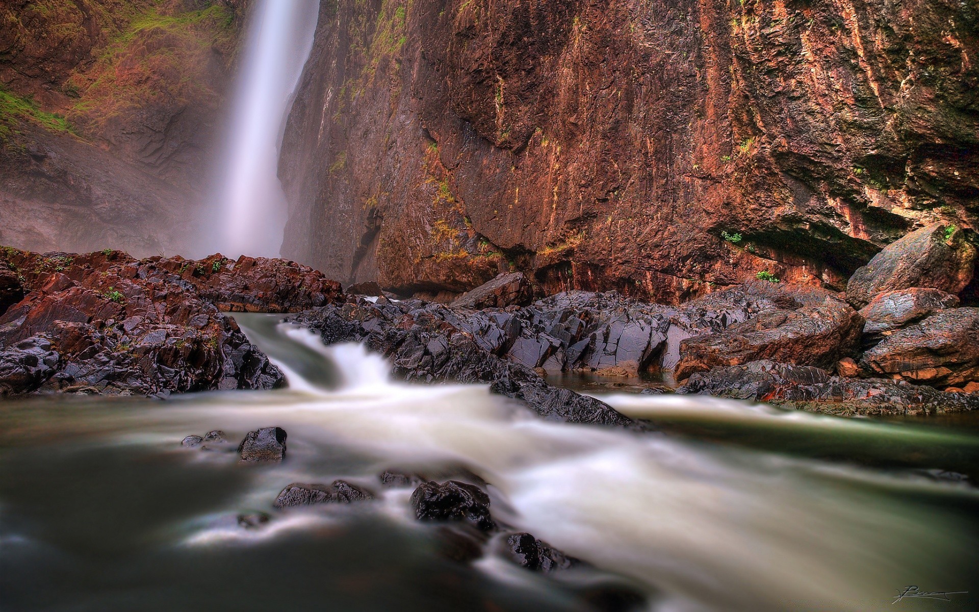 Die Brücke vor dem Hintergrund des Ozeans und des Sonnenuntergangs spiegelt sich darin wider