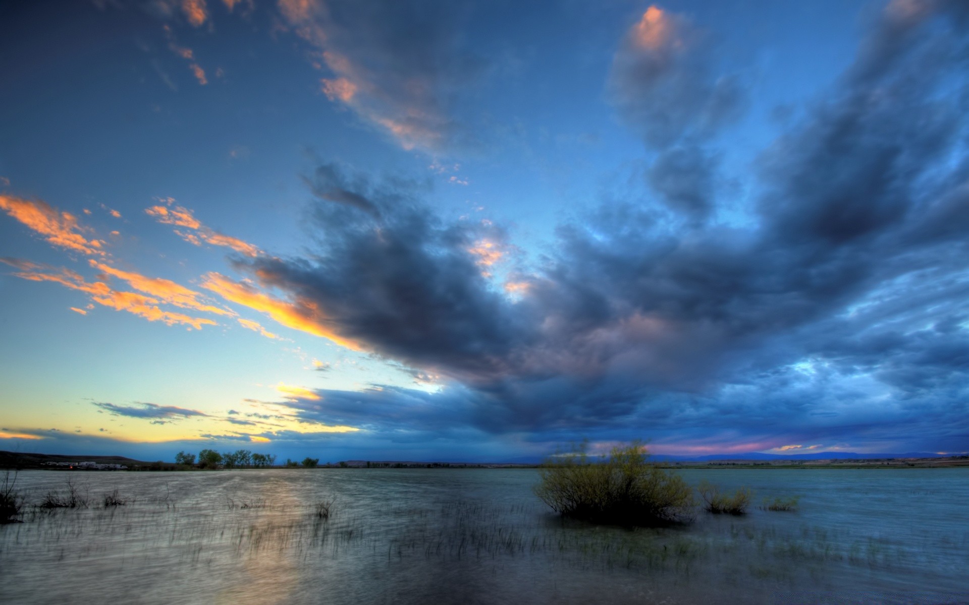 Cumulus-Sonnenuntergang Wolken über der Oberfläche des Sees