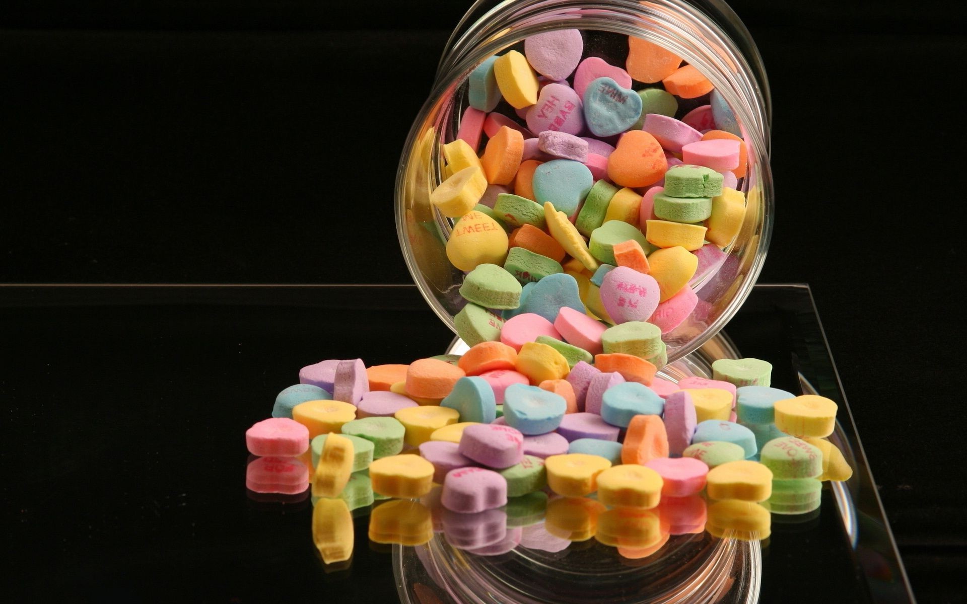 Grußkarte zum Valentinstag. Zwei Herzen auf einem farbigen Band Hintergrund