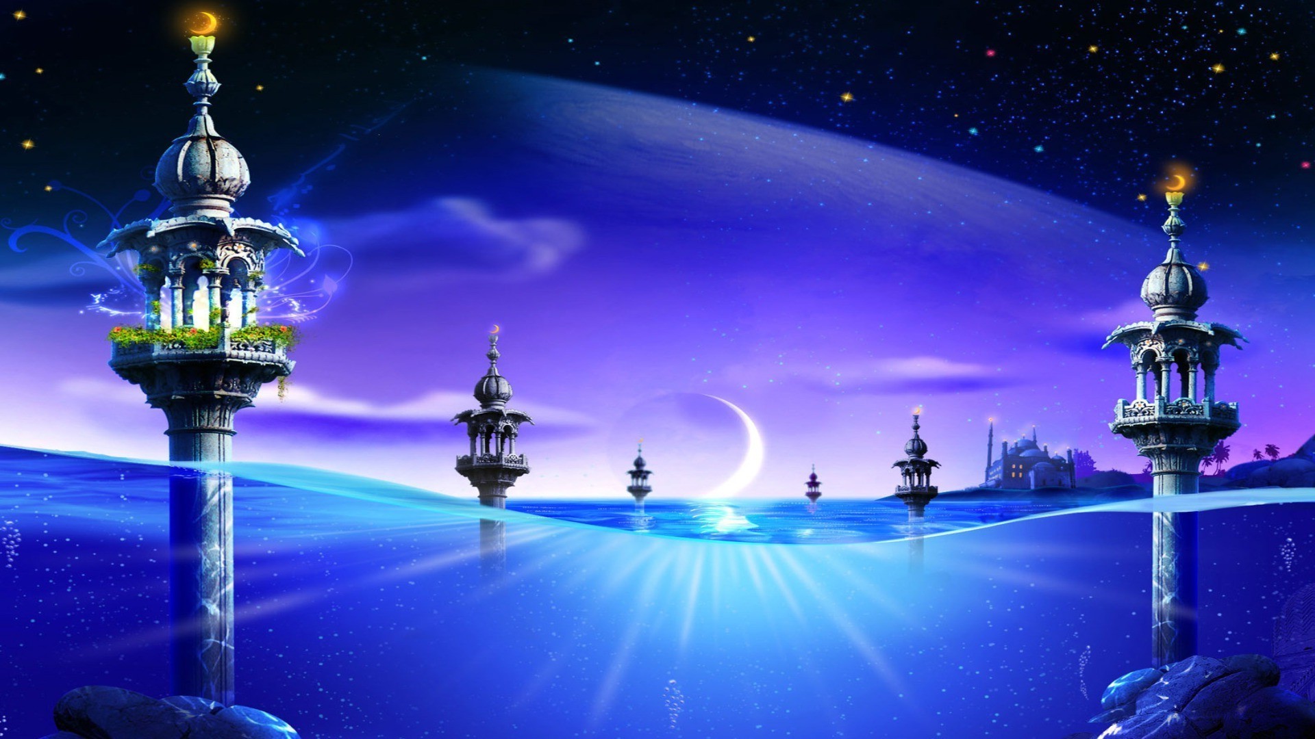 Türme erheben sich über dem Meer vor dem Hintergrund des Nachthimmels