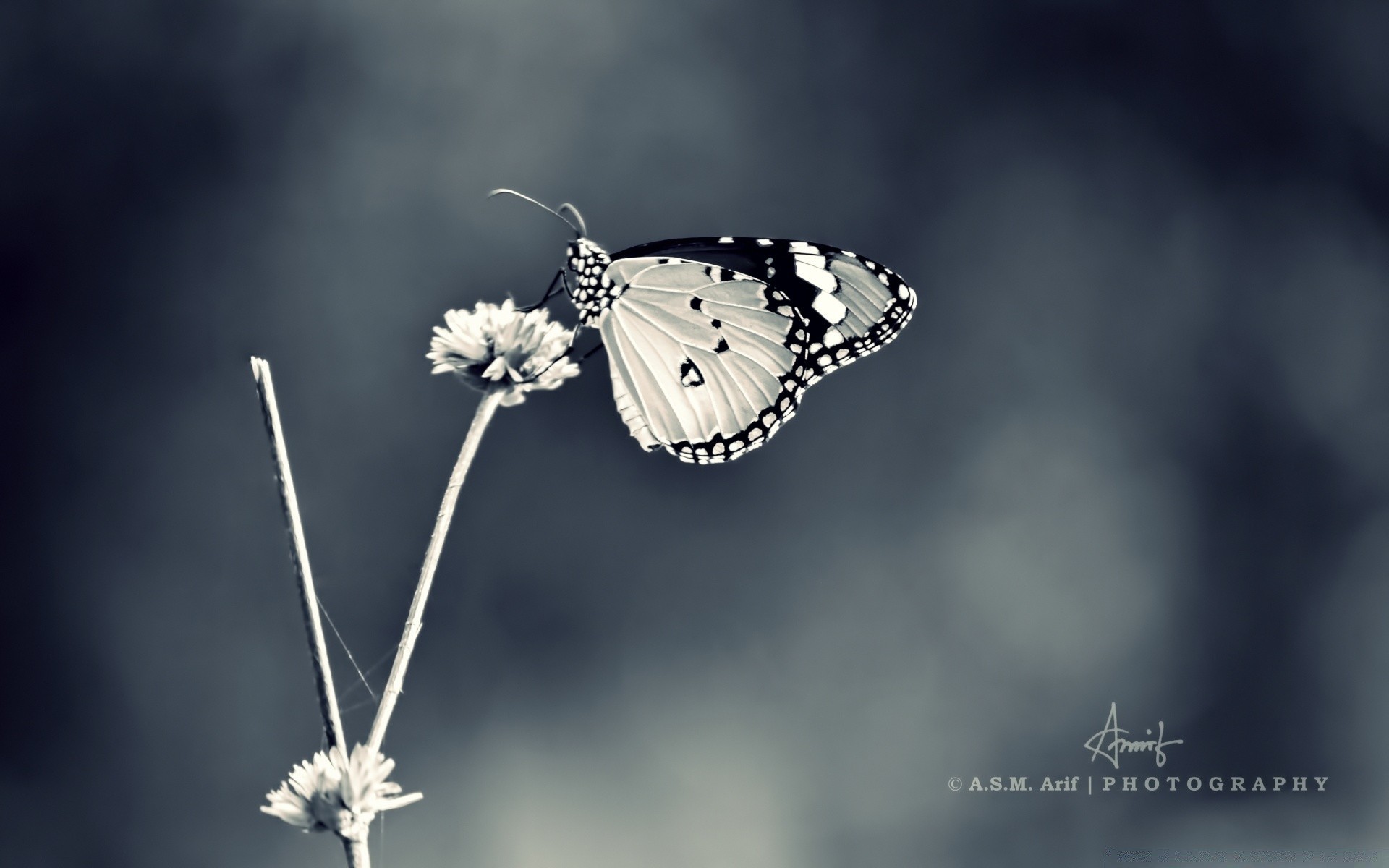 Der Schmetterling setzte sich draußen auf eine graue Blume; das Insekt ist sie