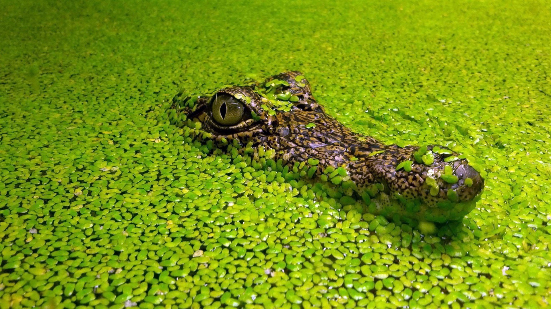 Krokodil verbarg sich mit jungen seerosen im wasserKrokodil verbarg sich mit jungen Seerosen im Wasser