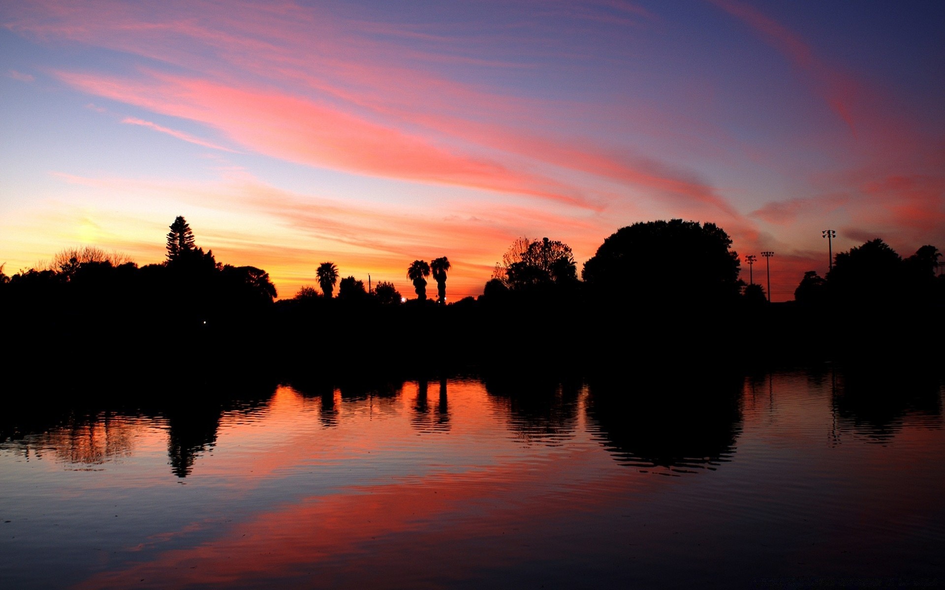 Der sonnenuntergang spiegelt sich im abendsee widerDer Sonnenuntergang spiegelt sich im Abendsee wider