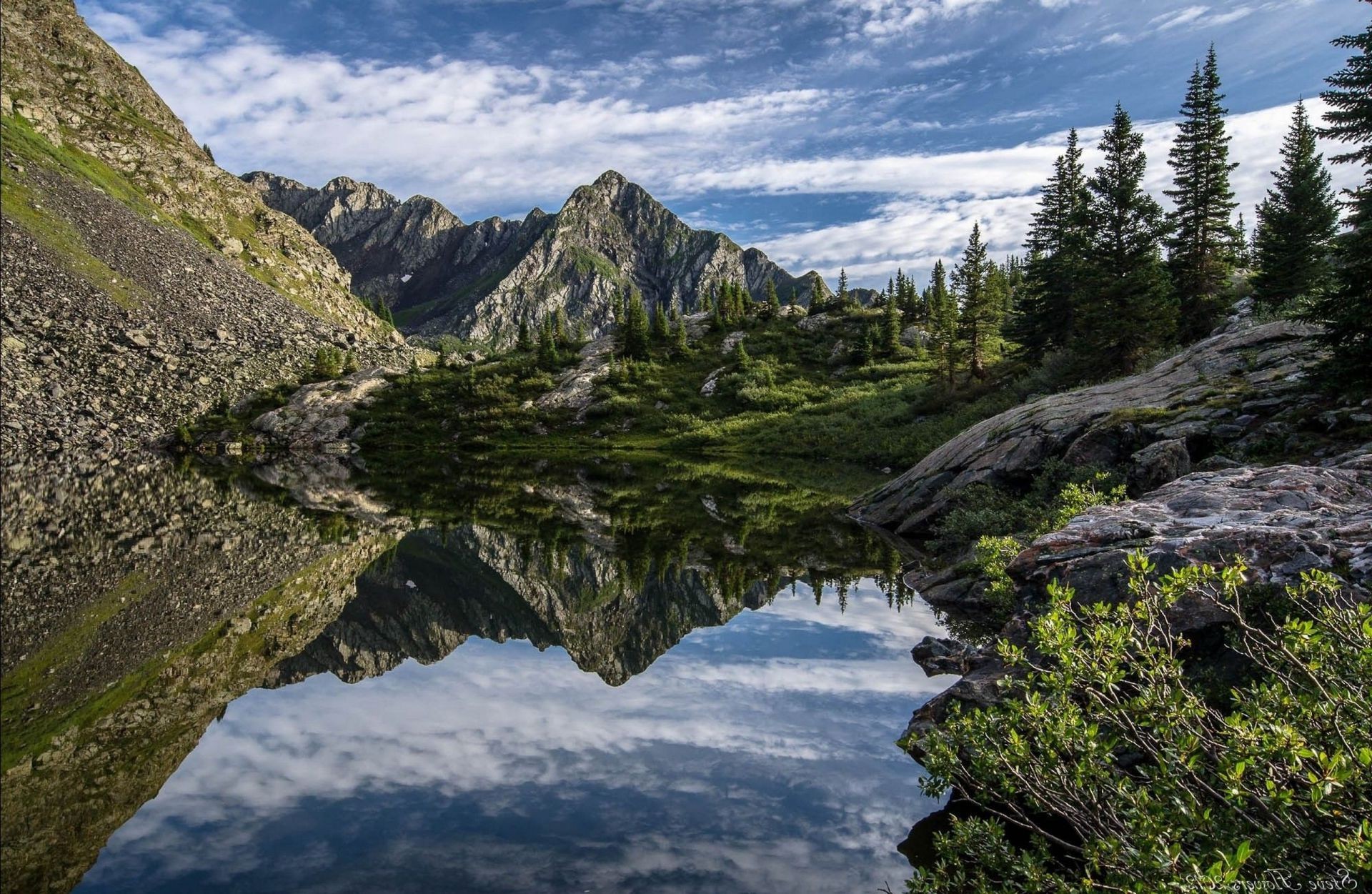 Der himmel spiegelt sich im wasser in den bergen widerDer Himmel spiegelt sich im Wasser in den Bergen wider