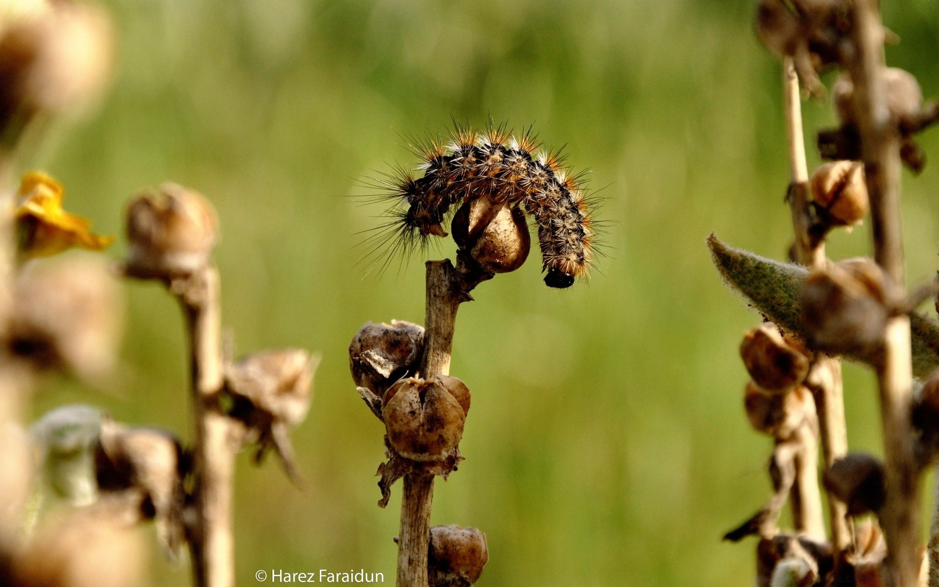 Die Raupe versucht, sich auf einer Blume zu verkleiden
