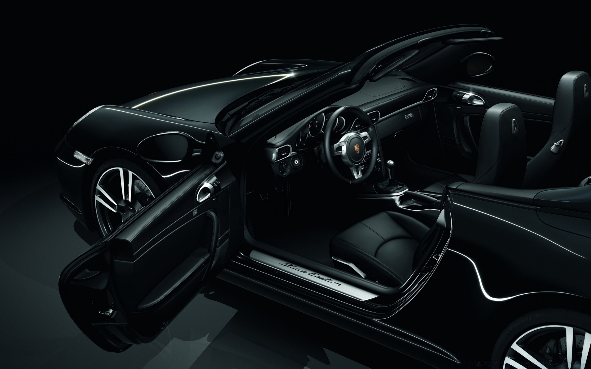 Ein schwarzer VW Golf R steht gegenüber dem Gebäude