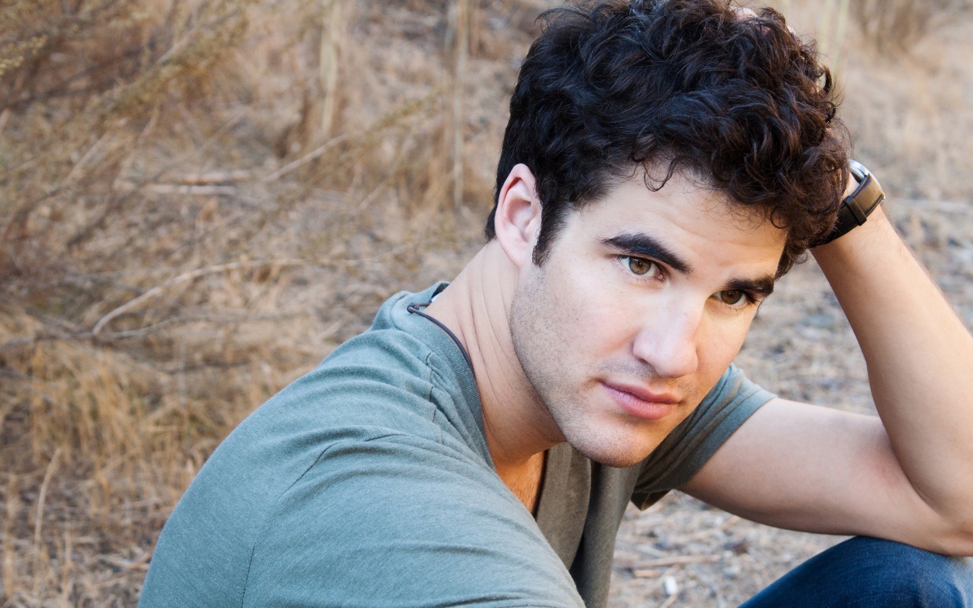 Schauspieler mit modischem Haarschnitt auf grauem Hintergrund
