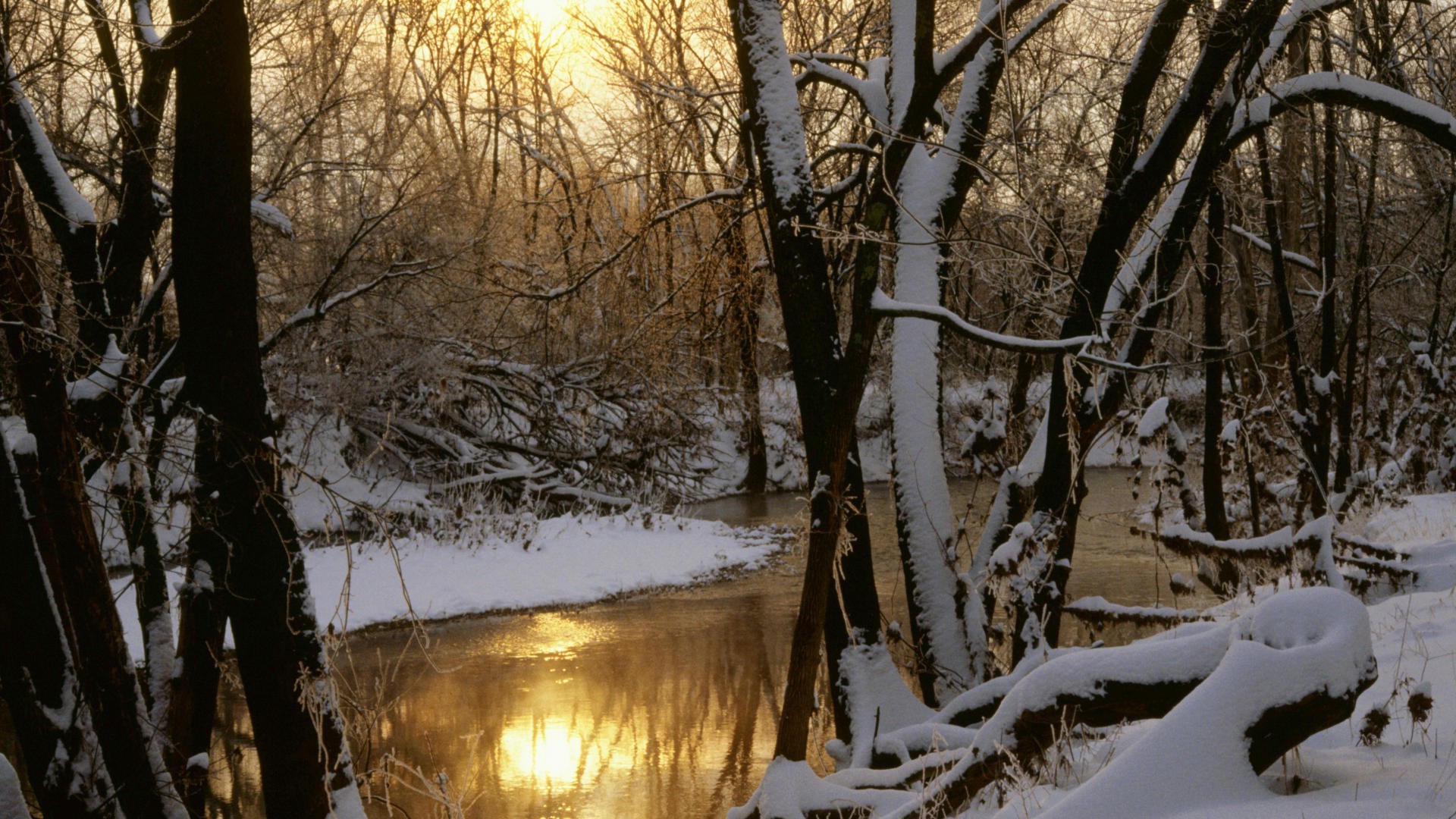 Verschneite Oberfläche vor dem Hintergrund von Wald und Bergen